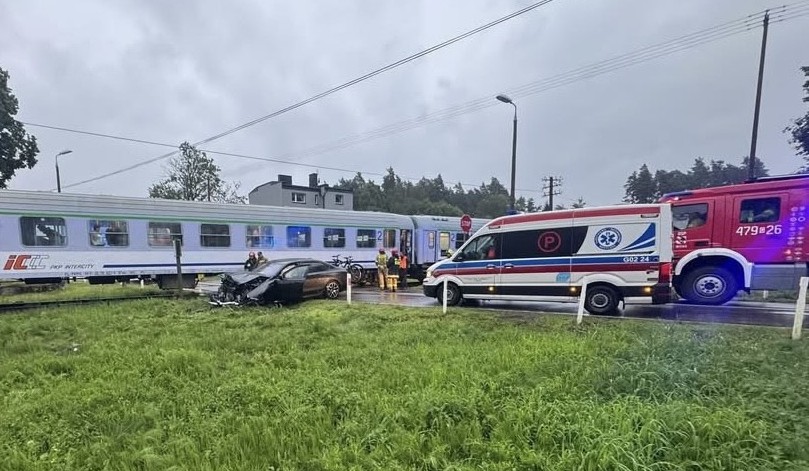 Groźny wypadek na przejeździe kolejowym. BMW wjechało pod pociąg
