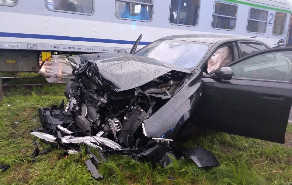 Groźny wypadek na przejeździe kolejowym. BMW wjechało pod pociąg