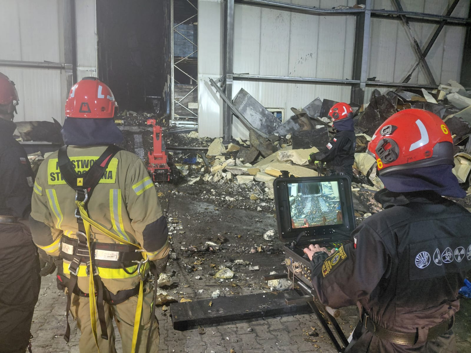 Nadal poszukują zaginionego strażaka. Trwa dogaszanie obiektu