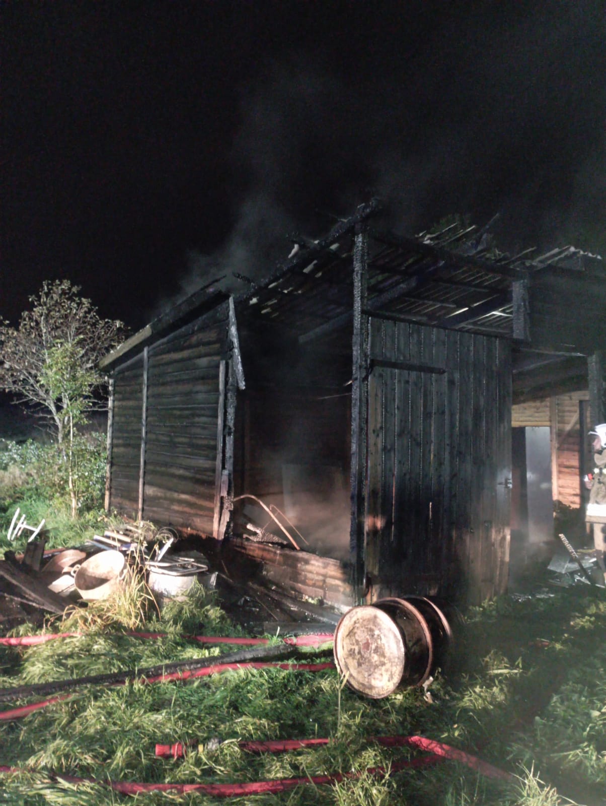 Płonął budynek gospodarczy w Mieroszynie. Z ogniem walczyły cztery zastępy | WIDEO, ZDJĘCIA
