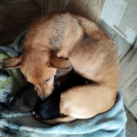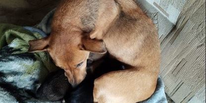 Suczka ze szczeniakami przebywała na mrozie. Miski z wodą całkowicie zamarznięte
