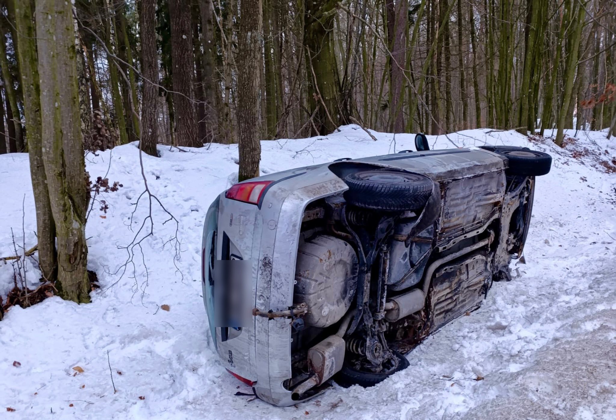 Ford wylądował na boku w rowie. 'Pamiętaj, aby zwolnić'