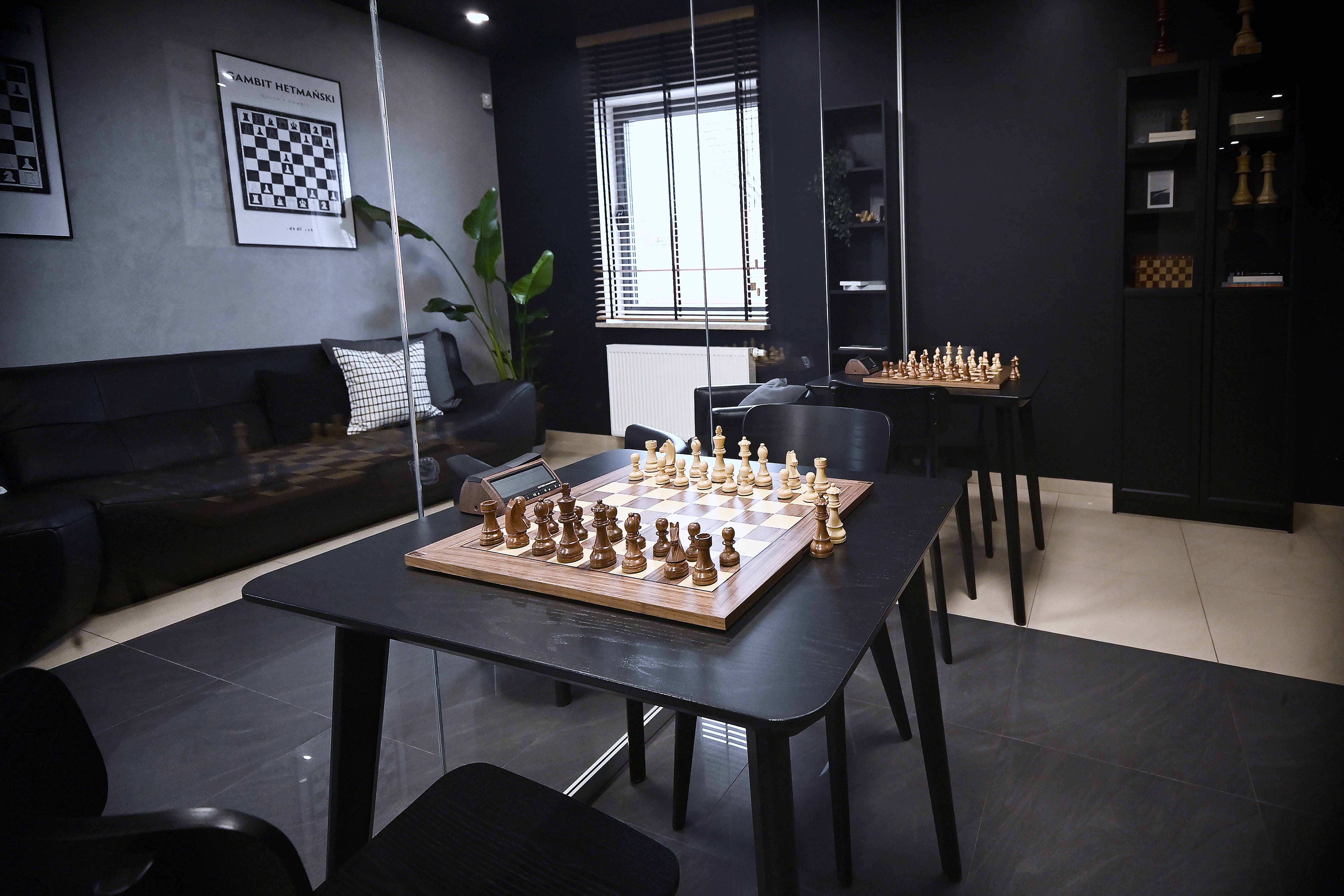 Skórzane fotele i kanapy, czarne stoły, lustra. To nie klub dżentelmenów tylko klub szachowy w Kosakowie