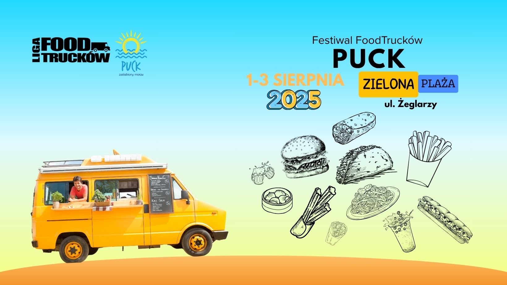 W dniach 1, 2 i 3 sierpnia 2025 r. na Zielonej Plaży w Pucku odbędzie się Festiwal Food Trucków