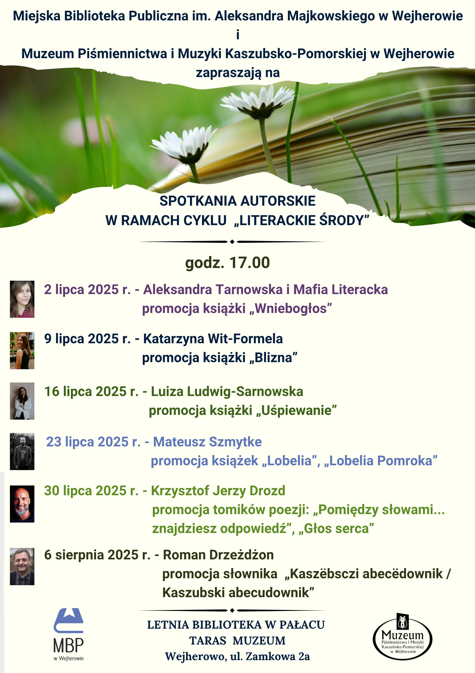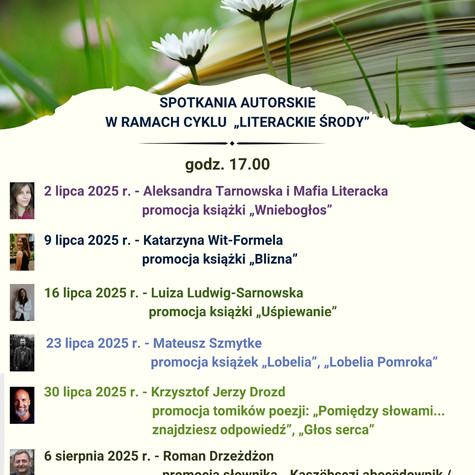 Wszystkie spotkania odbędą się o godzinie 17:00 w parku miejskim im. Aleksandra Majkowskiego.