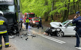 Przed godziną 9:00 w Rumi na ul. Kamiennej doszło do zderzenia samochodu osobowego z ciężarówką. Jedna osoba została poszkodowana.