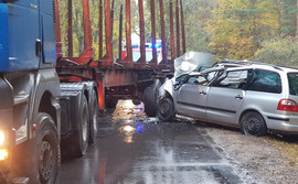 Na trasie Rybienko – Kostkowo (gmina Gniewino) samochód osobowy zderzył się z ciężarowym. Do zdarzenia doszło w piątek (26 października) rano.