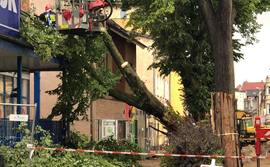 Sprawdziły się prognozy synoptyków i czwartkowe (21 czerwca) załamanie pogody dało się we znaki mieszkańcom północnej części Pomorza. Padał deszcz i wiał silny wiatr, a skutki jego działań można było zaobserwować m.in. na ulicy 12 Marca w Wejherowie, gdzie drzewo przewróciło się na pawilon handlowy.
