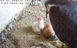 Pierwsze z trzech spodziewanych piskląt w gnieździe gdyńskich sokołów jest już na świecie. Zadomowione w kominie elektrociepłowni EDF ptaki po raz trzeci zostały rodzicami. Pod koniec tygodnia poznamy płeć ptaka, w kolejnych dniach powinny wykluć się pozostałe sokoły.