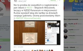 Kilka dni temu lekarz pracujący w jednej z rumskich przychodni wywiesił na drzwiach swojego gabinetu kartkę. Napisał na niej, że nie obsługuje zwolenników partii PiS, gdyż wyposażenie gabinetu zakupiono z funduszy WOŚP. Działanie lekarza wywołało lawinę negatywnych komentarzy, choć znaleźli się także zwolennicy jego teorii. Lekarz w emocjonującym wpisie na jednym z portali społecznościowych napisał, że jego działanie było jedynie wynikiem ironicznego żartu.