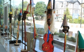 Diabelskie skrzypce to ludowy instrument muzyczny wyglądem przypominający miotłę - chordofon perkusyjny. Na jego strunach da się też basować, czyli wygrywać niskie dźwięki stanowiące harmoniczną podstawę dla ludowej melodii. Instrument można podziwiać za szybą w galerii Filharmonii Kaszubskiej. Wystawa będzie czynna do 3 sierpnia