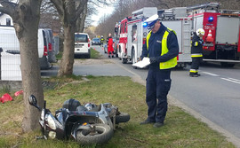 Do tragicznego wypadku z udziałem kierującego jednośladem doszło we wtorek (14 kwietnia) w Łebczu na ulicy Księdza Wielewskiego. Motocyklista stracił panowanie nad pojazdem i uderzył w drzewo. Mężczyzna zginął na miejscu.