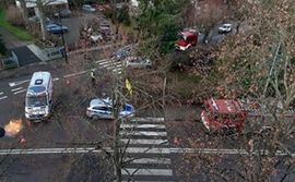 Do groźnie wyglądającego zdarzenia doszło na ulicy Hallera w Wejherowie. Na miejsce wysłano strażackie wozy bojowe i załogę karetki pogotowia.