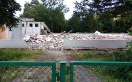 Stary budynek, niegdyś służący urzędnikom z gminy Krokowa, znika z miejscowego krajobrazu. Zastąpi go parking, który z kolei służyć ma przyszłym użytkownikom hali sportowej i basenu.