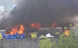 Pożar składowiska papieru i plastiku na terenie zakładu produkującego konstrukcje stalowe przy ulicy Hutniczej w Gdyni.
