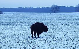 Wraz z nastaniem większych mrozów i zaleganiem pokrywy śnieżnej pracownicy Nadleśnictwa Lębork rozpoczęli dokarmianie „nowego mieszkańca lasu”, czyli żubra. To ten sam osobnik, który wzbudził szerokie zainteresowanie, a wręcz sensację na terenie lasów Kaszub Północnych pod koniec ubiegłego roku.
