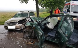 Na trasie Łętowo – Karczemka (powiat wejherowski) czołowo zderzyły się dwa samochody osobowe. Do zdarzenia doszło na łuku drogi.