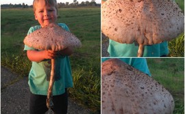 Gigantyczną kanię w okolicach Żarnowca znalazł pan Michał i jego 4-letni syn Bartek. Grzyb miał ponad pół metra wysokości i prawie 90 cm w obwodzie kapelusza.