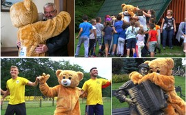Wielki pluszowy miś pojawiał się w różnych zakątkach Wejherowa i przytulał napotkanych ludzi. Zobacz materiał filmowy z drugiej edycji akcji „Uściśnij misie, czyli przytul nie irytuj…”.