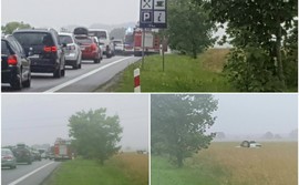 Na wojewódzkiej drodze nr 216 za Puckiem w kierunku Redy zderzyły się dwa samochody. Jedno z aut wypadło z drogi i dachowało.