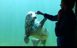 Ewa pływa do wyznaczonego miejsca i wraca po nagrodę, Agata macha płetwą, robi piruety w wodzie i dotyka nosem wyznaczonego punktu akwarium – foki, które znajdują się w Stacji Morskiej w Helu uczą się sztuczek i akrobacji.