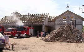 Wiecha zawisła na dachu nowej części siedziby OSP w Gościcinie. Garaże i magazyn zarządzania kryzysowego już niedługo będą do dyspozycji strażaków.