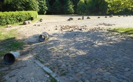 Samochód ciężarowy zniszczył fragment parkingu przy ulicy Strzeleckiej w Wejherowie. W wyniku manewrowania na kamiennej nawierzchni powstały dziury. Dzięki kamerom monitoringu miejskiego ustalono sprawcę uszkodzenia parkingu.