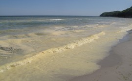 Gdyńscy strażnicy miejscy otrzymywali liczne zgłoszenia dotyczące zanieczyszczenia wody w Zatoce Gdańskiej. Mundurowi wyjaśniają, że żółte zabarwienie wody spowodowane jest pyleniem sosny i nie stanowi żadnego zagrożenia.*