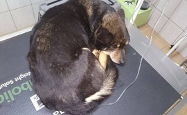 Do schroniska w Dąbrówce trafił pies z rozległymi urazami. Ze wstępnych ustaleń wynika, że został umyślnie zraniony. Kornelek jest niewielki, czarny, brązowo podpalany o gładkiej, miękkiej sierści. Pies miał na sobie szarą obrożę, znaleziono go w Kościerzynie