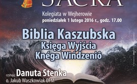 Trzynasta już edycja Verba Sacra w Wejherowie odbędzie się w poniedziałek (1.02). W ubiegłym roku Księgę Rodzaju - Dzieje Jakuba i jego synów czytali Danuta Stenka oraz o. Jakub Waszkowiak. W tym roku usłyszymy fragmenty Księgi Wyjścia