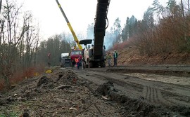 Remont krótkiego odcinka drogi wojewódzkiej nr 218 wymaga wielu skomplikowanych prac i wykonywany jest w trybie awaryjnym. Roboty drogowe i zamknięcie modernizowanego odcinka nastąpiło z dnia na dzień.