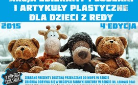 Już po raz czwarty w Redzie odbędzie się Akcja Zbierania Pluszaków i Artykułów Plastycznych dla dzieci z najuboższych rodzin. Społecznicy przyjmują zarówno nowe, jak i używane maskotki oraz artykuły plastyczne w postaci farbek, pędzli, kredek, flamastrów czy bloków rysunkowych.