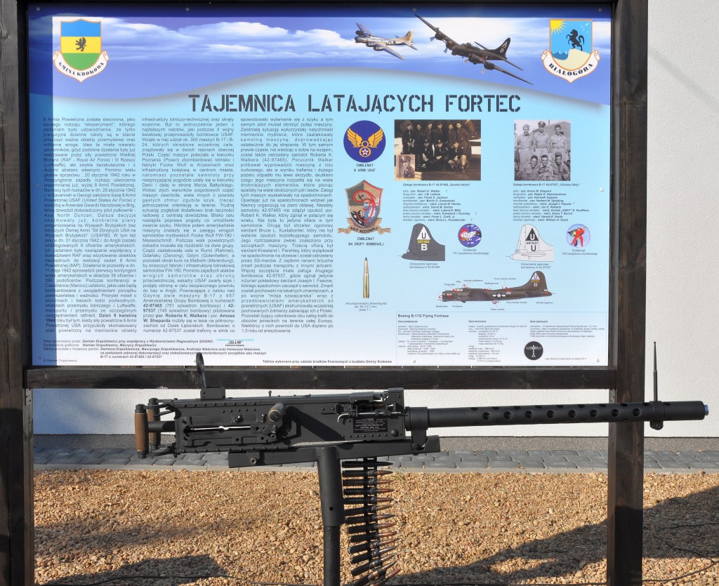 Podczas odsłonięcia tablicy zaprezentowano także replikę karabinu maszynowego M-2 Browning, w które wyposażone były amerykańskie bombowce. Ciekawostką jest fakt, że replika karabinu zaopatrzona była także w oryginalne pociski kalibru 12,7 mm odnalezione w miejscu katastrofy. Uroczystość odsłonięcia tablicy pamiątkowej poprzedziło krótkie przemówienie Wójta Gminy Krokowa oraz Damiana Drąszkiewicza, który przybliżył zebranym osobom historię katastrofy amerykańskich bombowców. Poświęcenia tablicy dokonał z kolei ks. Tomasz Juchniewicz – Proboszcz Parafii Wniebowzięcia NPM w Białogórze.