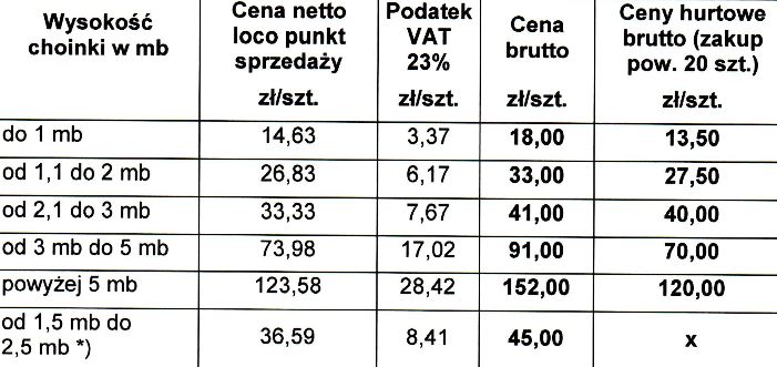 Ceny poszczególnych drzewek będą zależne od ich wielkości. Poniżej zamieszczamy cennik.
