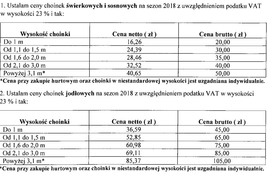 Drzewka pochodzą ze specjalnej plantacji choinkowej. Cena każdej choinki to 40 złotych. Niestety, nie ma możliwości, by zapłacić na miejscu kartą. Warto zatem zabrać ze sobą gotówkę. Leśnicy pomogą wyciąć i zapakować choinkę. Trzeba jednak zaopatrzyć się w narzędzia, które umożliwią wycinkę, takie jak siekierka czy piła do drewna.