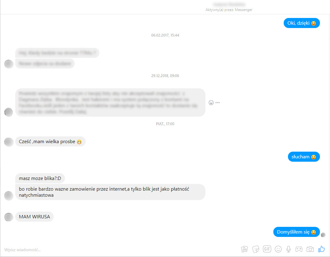 „Na portalu społecznościowym napisała do mnie znajoma, pytała czy mam BLIK-a, chciała opłacić zamówienie przez internet” - nasz czytelnik Grzegorz z powiatu puckiego nie dał się wplątać w oszustwo i postanowił ostrzec przed nim innych.
