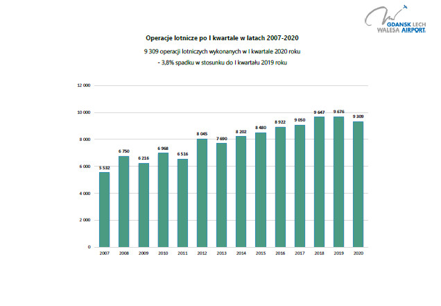 Po obiecujących pierwszych dwóch miesiącach 2020 roku, Port Lotniczy Gdańsk odnotował duży spadek liczby podróżnych i operacji lotniczych w marcu. Powodem jest oczywiście pandemia koronawirusa i wstrzymanie lotów, nie tylko na gdańskim lotnisku. Strat w liczbie pasażerów trzeba było się spodziewać, natomiast pocieszać mogą dobre wyniki w zakresie transportu cargo; praktycznie nie zmieniły się one, w porównaniu z I kwartałem 2019 roku.