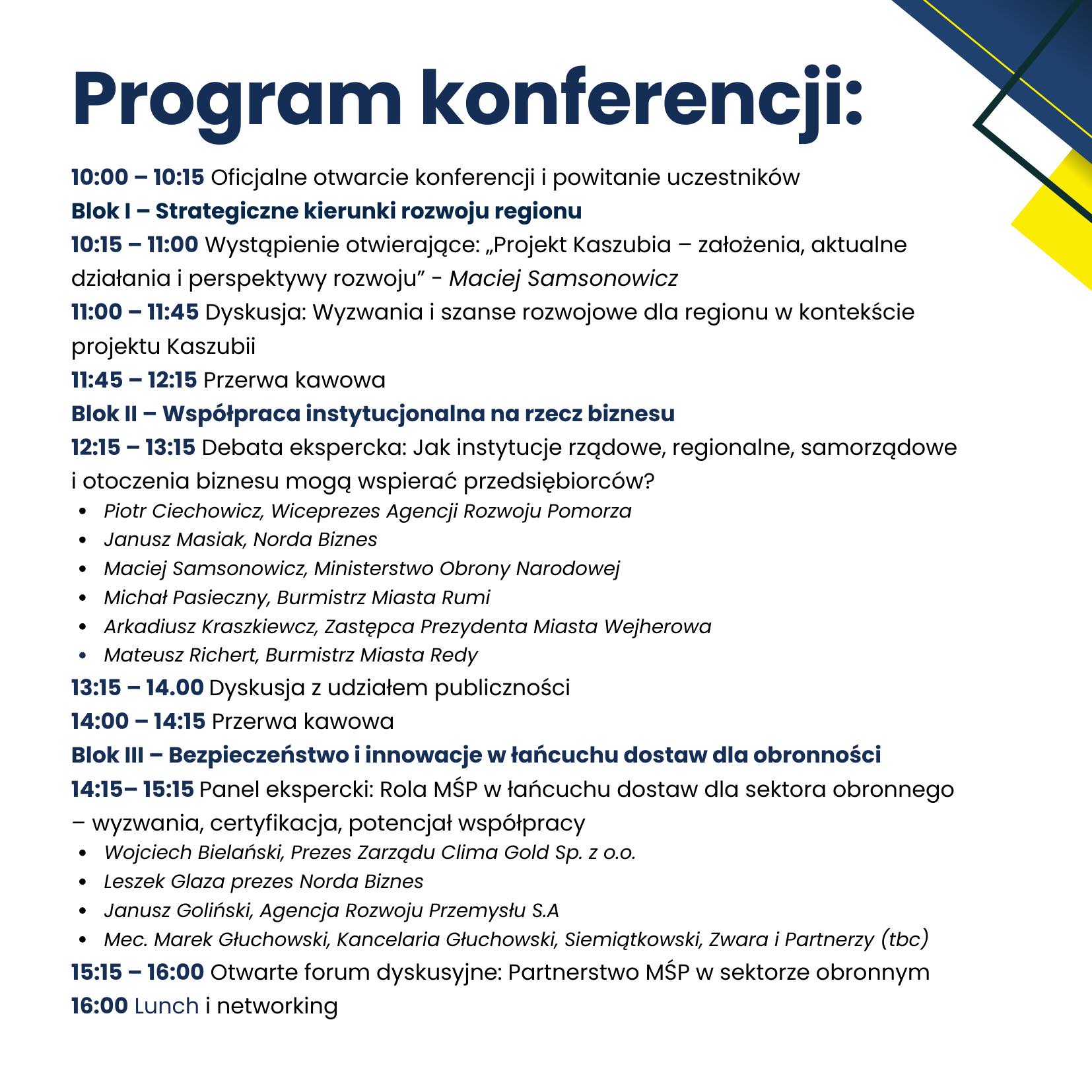 Spotkanie odbędzie się w godzinach 10:00–16:00. Organizatorzy zachęcają do zapisów i zapewniają, że każdy uczestnik wyjdzie z konferencji z praktyczną wiedzą o strategicznych inwestycjach w regionie oraz możliwościach biznesowych związanych z projektem Kaszubia.