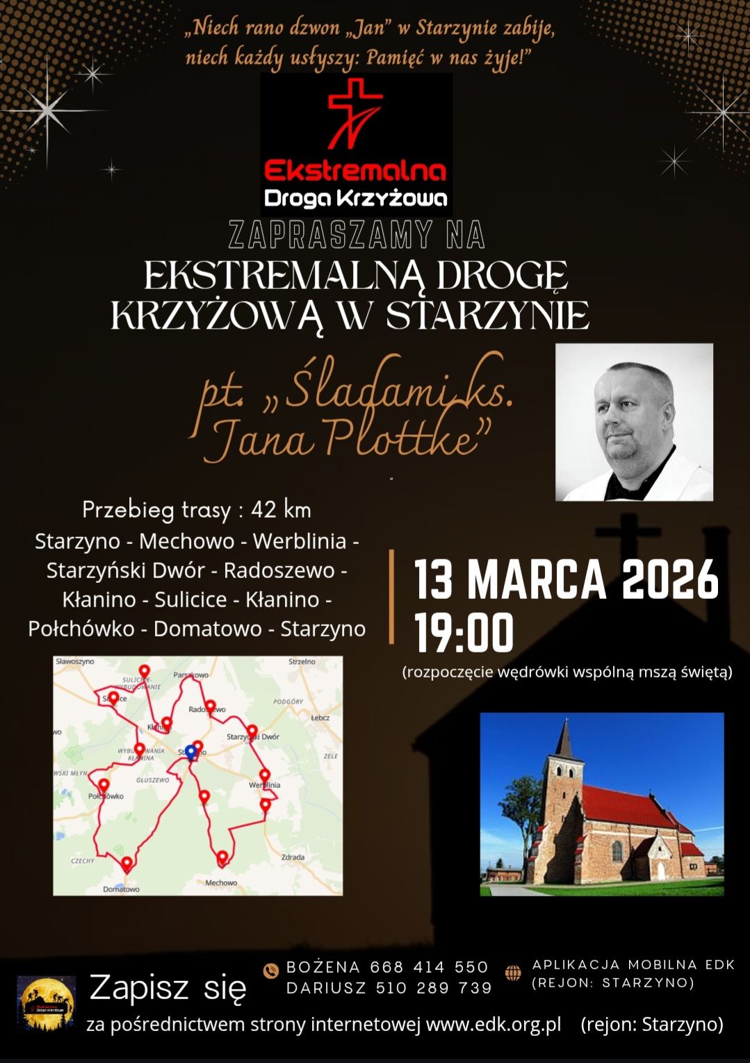 Ekstremalna Droga Krzyżowa w Starzynie ma stać się nie tylko nowym punktem na mapie EDK, ale także szczególnym wyrazem pamięci i wdzięczności wobec kapłana, który na trwałe zapisał się w historii lokalnej wspólnoty.