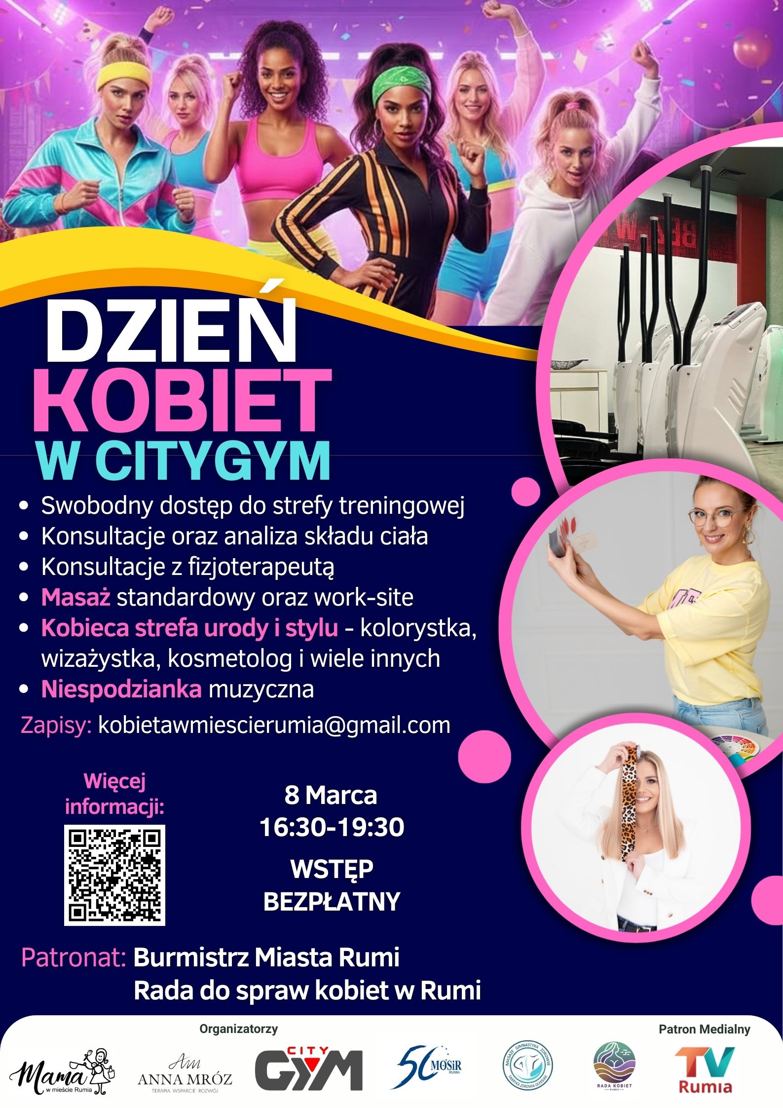 W niedzielę 8 marca w godz. 16:30–19:30 w klubie CityGym Rumia odbędzie się bezpłatne wydarzenie z okazji Dnia Kobiet. Obiekt podlega pod Miejski Ośrodek Sportu i Rekreacji w Rumi.