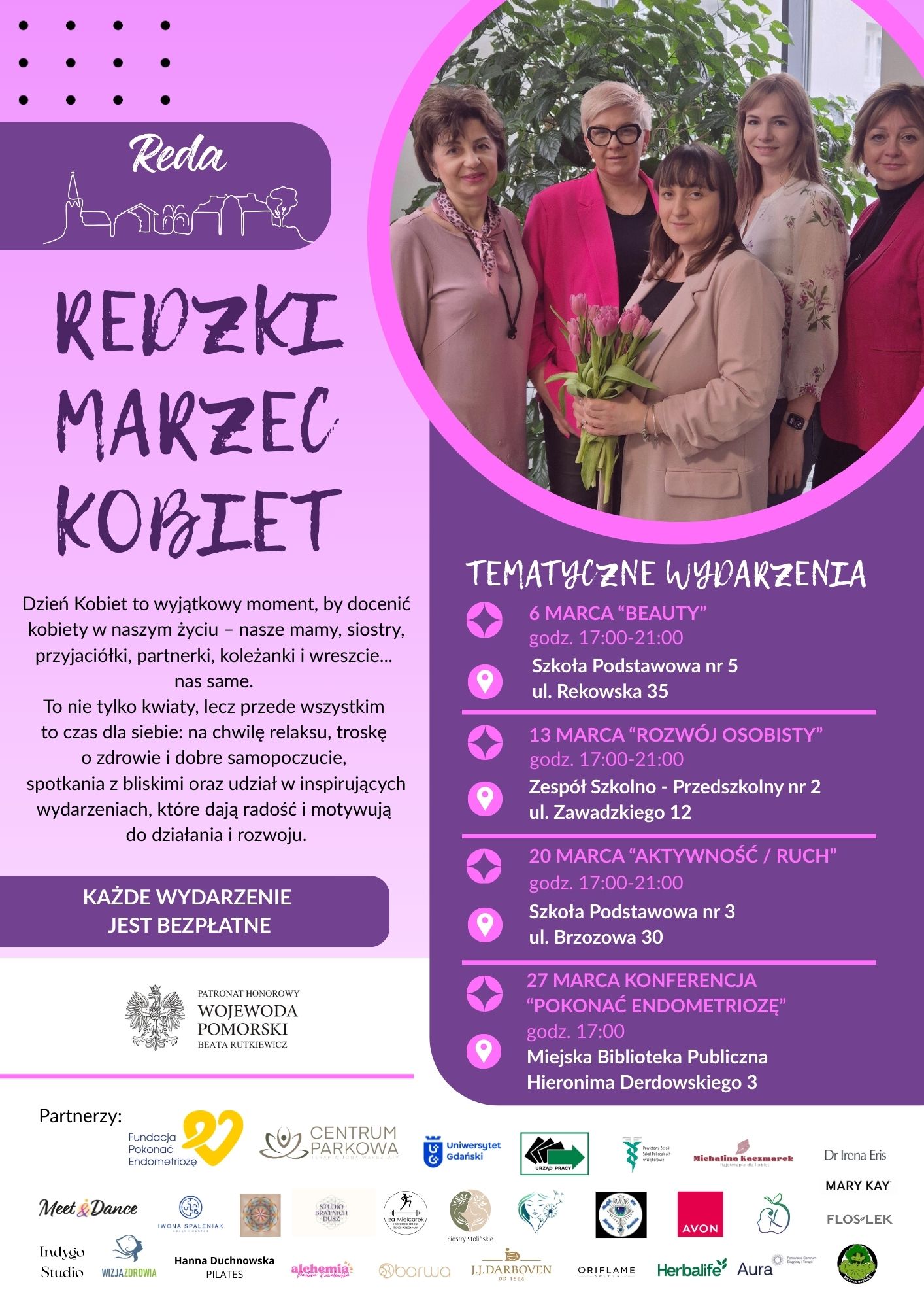 W marcu 2026 roku w Reda po raz pierwszy odbędzie się „Redzki Marzec Kobiet”. To nowa inicjatywa skierowana do kobiet, obejmująca cztery piątkowe spotkania w godz. 17:00–21:00.