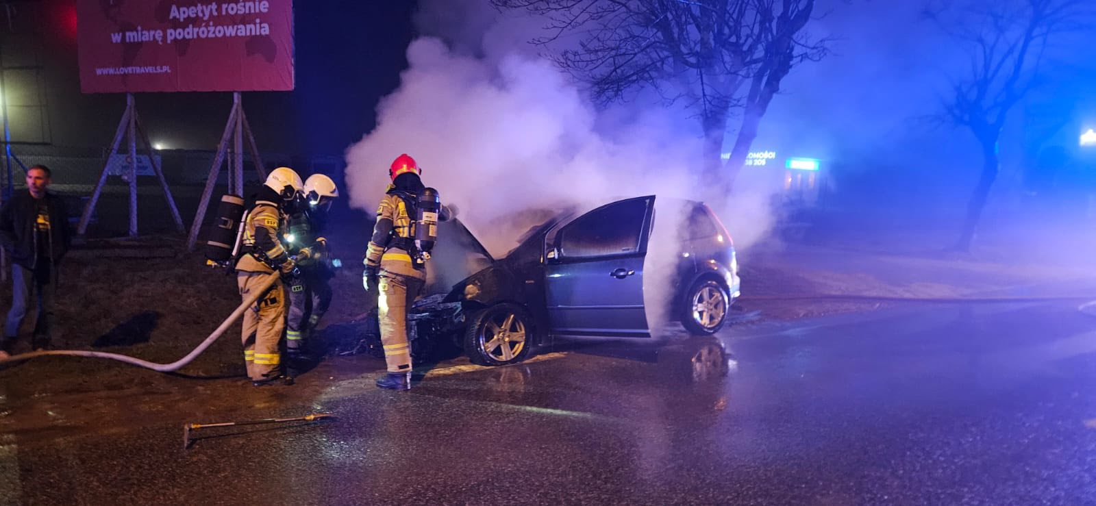 W poniedziałkowy wieczór, 16 marca 2026 roku, we Władysławowie doszło do pożaru samochodu osobowego. Na miejsce natychmiast skierowano służby ratunkowe.